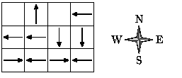 В каждой клетке острова находится не более одного крокодила. Напуганный орехом крокодил быстро бежит строго по прямой, пока не окажется в воде. Для каждого крокодила известно направление, в котором он побежит, если его напугать. Направления, в которых будут убегать крокодилы, параллельны сторонам острова.
